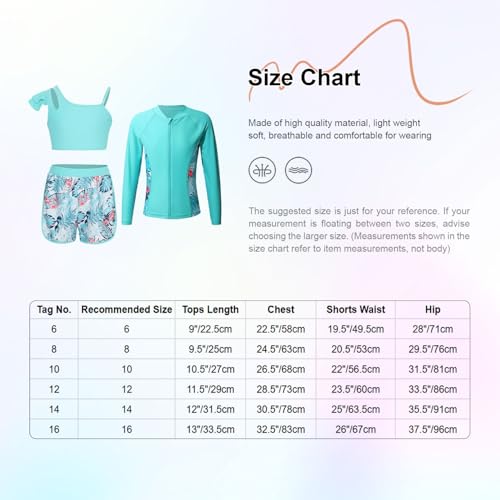 Moily Kids Girls 3PCS Athletic Rash Guards UPF 50+ Swim Coat Tankini Top with Bottoms Swimsuits 6
