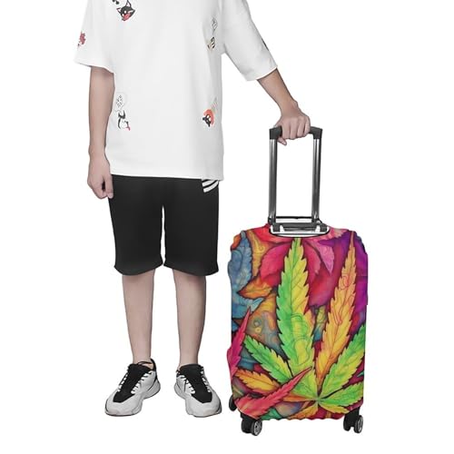 HOT ! MultiColor Leaf Weed Art Luggage Cover, Washable Elastic Suitcase Cover Protector Fit 18-32 Inch Luggage