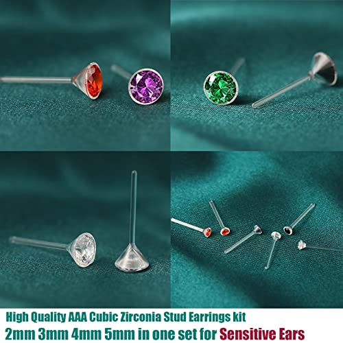 8 Pairs Anti Allergy Plastic Earrings for Sensitive Ears, Include 8 Pairs Silicone Soft earring backs, Plastic Post Earrings for Women, Birthstone Cubic Zirconia Stud Earrings Kit 2mm 3mm 4mm 5mm in one Set 4