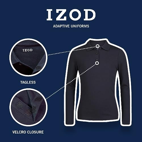 More information about IZOD Girls' School Uniform Adaptive Long Sleeve Polo Shirt, Velcro Closure & Faux Buttons, Comfortable Interlock Fabric
