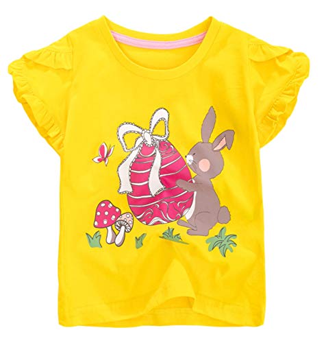 Kids Girl Ruffle Short Sleeve Tee Shirts Sets Cotton Casual Crewneck Pink Cat Yellow Rabbit Tops T-Shirts 3 Packs 4T 4