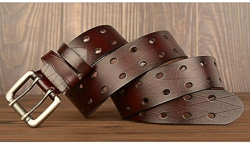 Men Double Prong Leather Belt 1.5" Wide Genuine Leather Double Grommet Holes Retro Casual Work belt for Jeans Pants 1