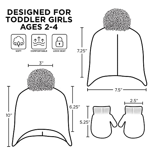 • PERFECT FOR SNOWY DAYS: Designed to keep little hands and ears warm, this hat and mitten set is a must-have for animated outdoor adventures. For added style, the hat is topped off with a cute pompom.