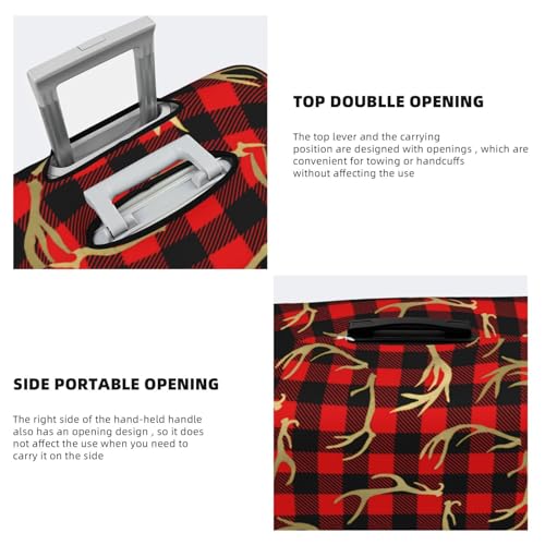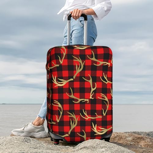 HOT ! Red & Black Buffalo Plaid & Gold Deer Antlers Luggage Cover, Protective Washable Suitcase Cover - Travel High Elastic Fibers Suitcase Protector Fits Large