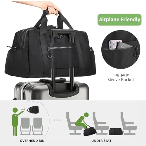 FOREGOER Weekender Travel Bag with Laptop Compartment 26L, 20×10×8 Personal Item Duffle Bag, Waterproof Nylon Carry-On Overnight Travel Bag for women men, Hospital Bag for Labor and Delivery(Black) 4
