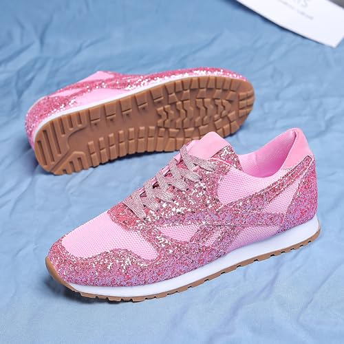 Women's Glitter Sneakers Lace up Casual Flat Sparkle Outdoor Non-Slip Leisure Walking Shoes 5